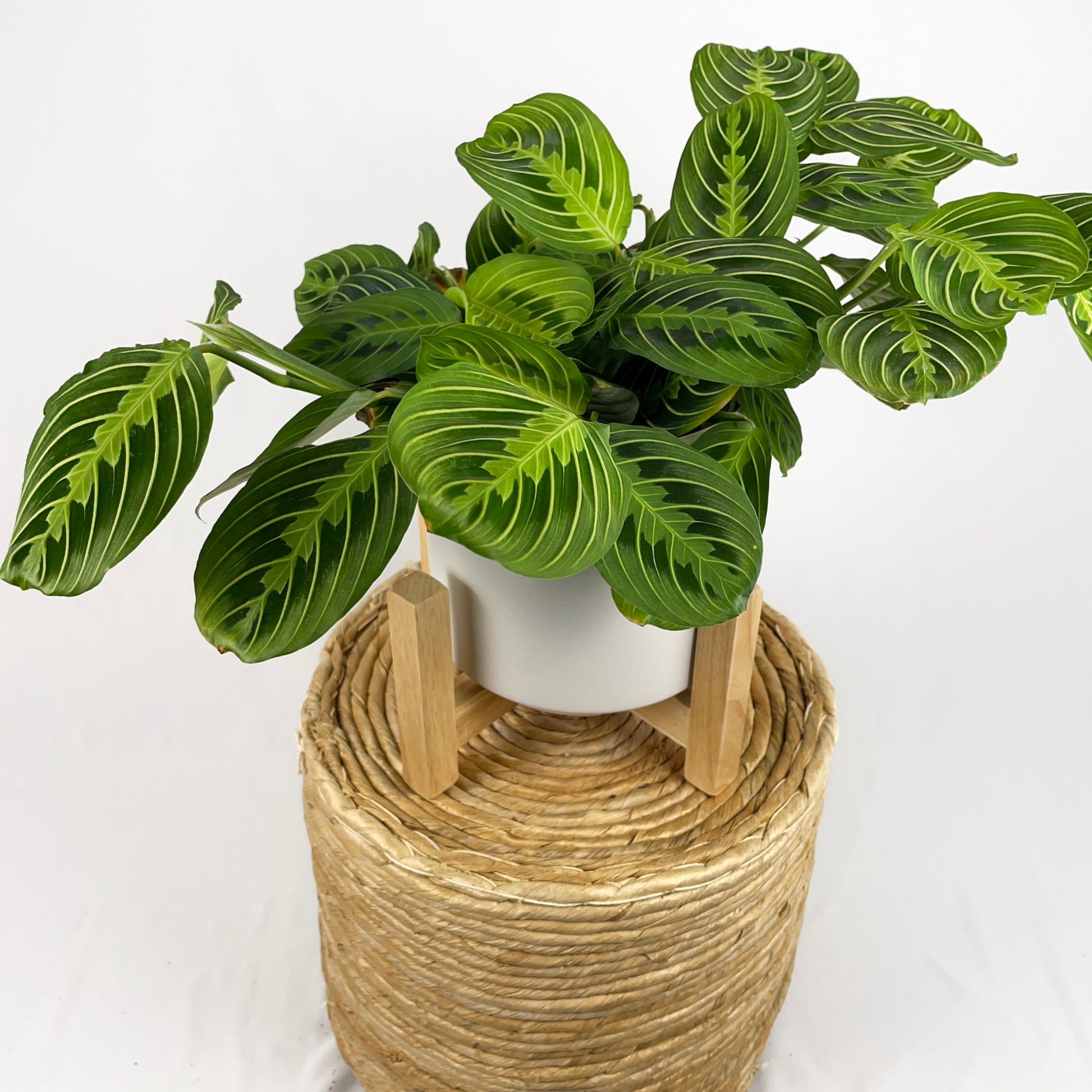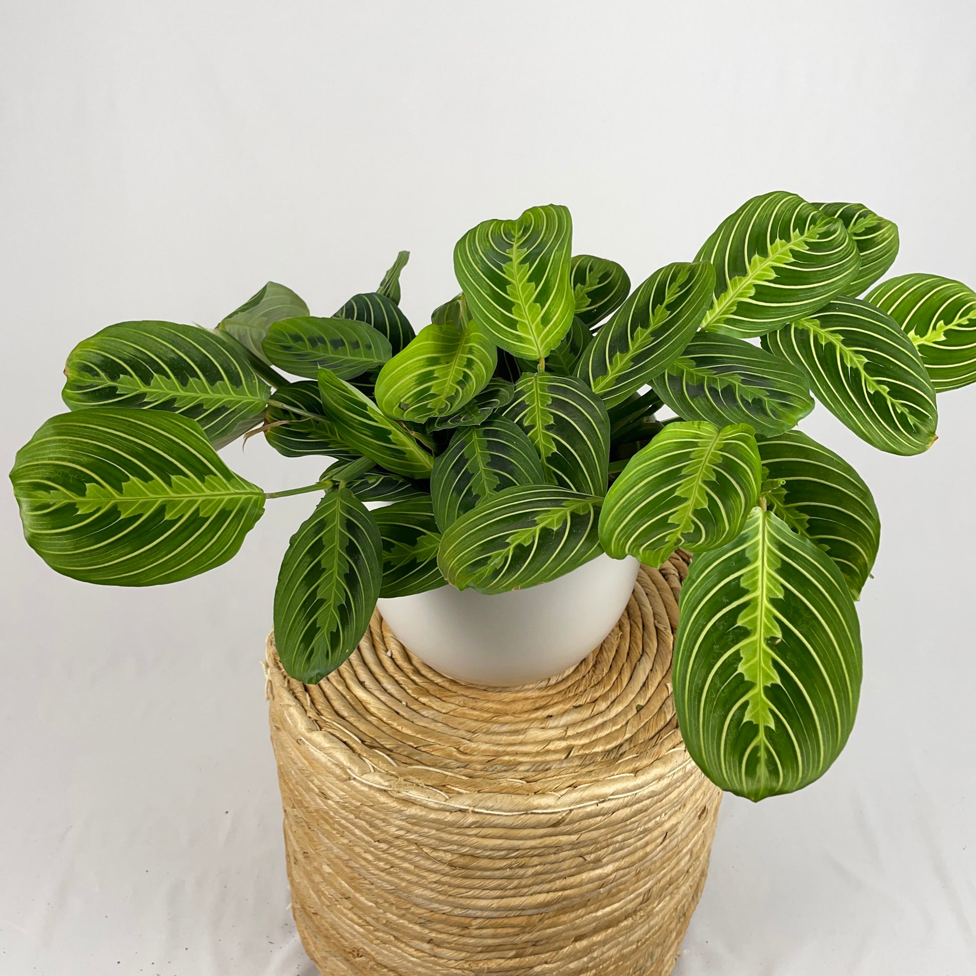 Medium to bright indirect light and proper watering are the most important steps to keep your Maranta happy. Water your plant when the top few inches become dry. Luckily this Maranta will let you know if it needs extra care with the leaves folding up if it needs watering. Overwatering will lead to yellowing leaves or blackened stems. Underwatering can be identified by browning or curling leaves.